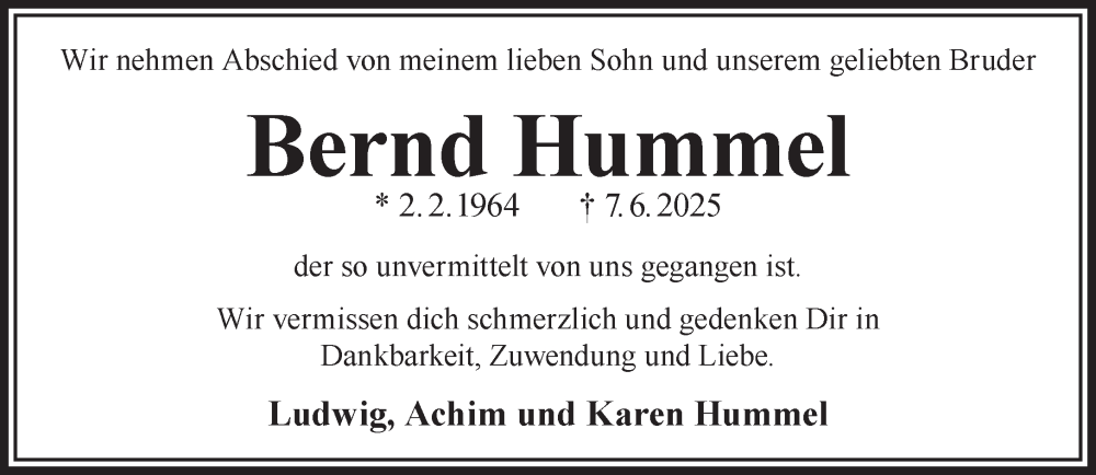 Hier finden Sie alle Traueranzeigen aus der Zeitung, die bisher für Bernd Hummel erschienen sind. Weitere Traueranzeigen, die in der Zeitung erscheinen, werden hier ebenfalls aufgelistet