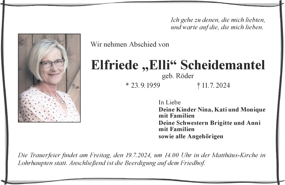 Hier finden Sie alle Traueranzeigen aus der Zeitung, die bisher für Elfriede Scheidemantel erschienen sind. Weitere Traueranzeigen, die in der Zeitung erscheinen, werden hier ebenfalls aufgelistet