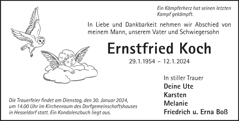 Hier finden Sie alle Traueranzeigen aus der Zeitung, die bisher für Ernstfried Koch erschienen sind. Weitere Traueranzeigen, die in der Zeitung erscheinen, werden hier ebenfalls aufgelistet