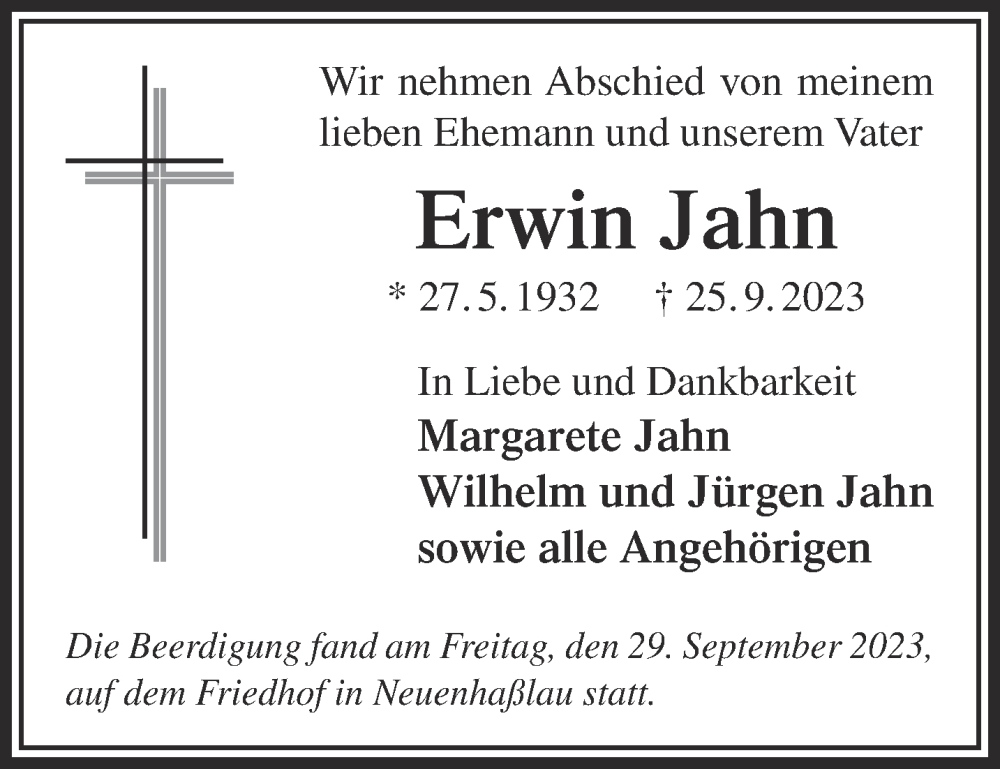 Hier finden Sie alle Traueranzeigen aus der Zeitung, die bisher für Erwin Jahn erschienen sind. Weitere Traueranzeigen, die in der Zeitung erscheinen, werden hier ebenfalls aufgelistet