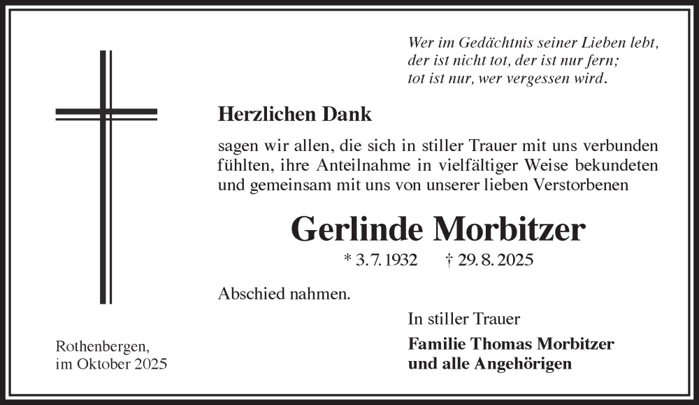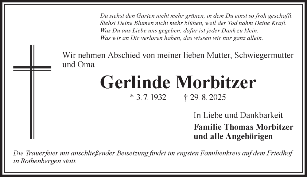 Hier finden Sie alle Traueranzeigen aus der Zeitung, die bisher für Gerlinde Morbitzer erschienen sind. Weitere Traueranzeigen, die in der Zeitung erscheinen, werden hier ebenfalls aufgelistet