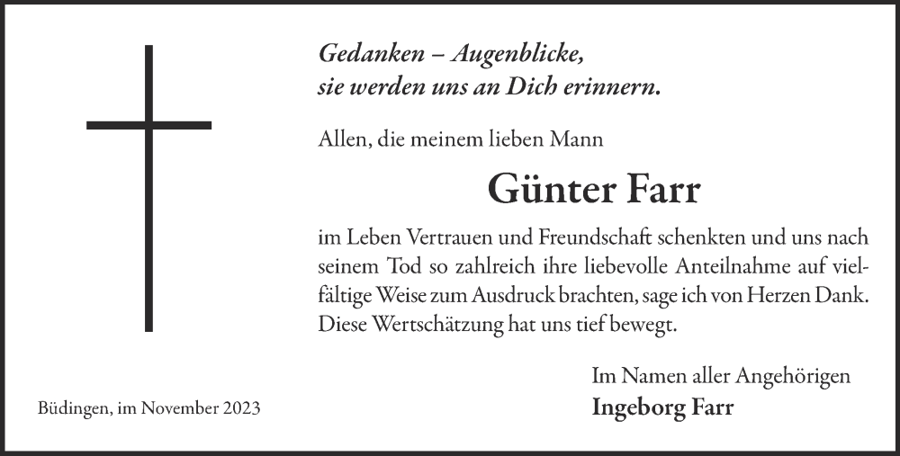 Hier finden Sie alle Traueranzeigen aus der Zeitung, die bisher für Günter Farr erschienen sind. Weitere Traueranzeigen, die in der Zeitung erscheinen, werden hier ebenfalls aufgelistet