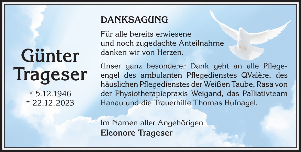 Hier finden Sie alle Traueranzeigen aus der Zeitung, die bisher für Günter Trageser erschienen sind. Weitere Traueranzeigen, die in der Zeitung erscheinen, werden hier ebenfalls aufgelistet
