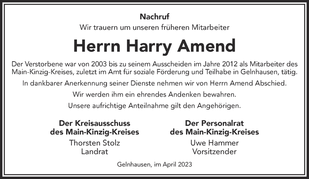 Hier finden Sie alle Traueranzeigen aus der Zeitung, die bisher für Harry Amend erschienen sind. Weitere Traueranzeigen, die in der Zeitung erscheinen, werden hier ebenfalls aufgelistet
