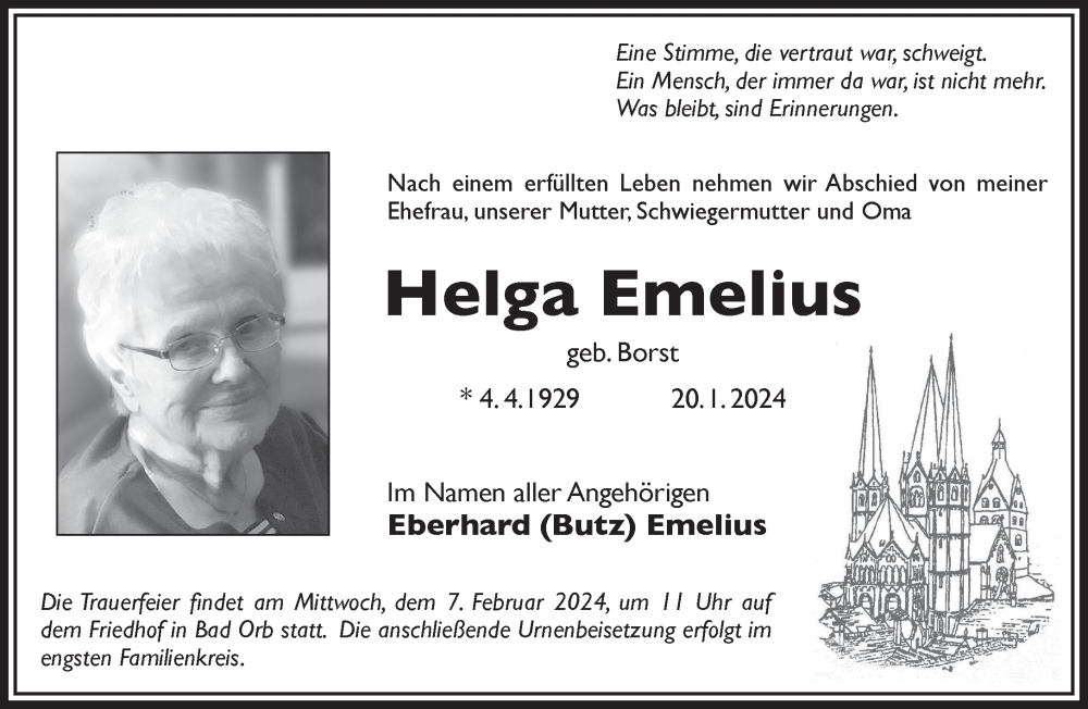 Hier finden Sie alle Traueranzeigen aus der Zeitung, die bisher für Helga Emelius erschienen sind. Weitere Traueranzeigen, die in der Zeitung erscheinen, werden hier ebenfalls aufgelistet