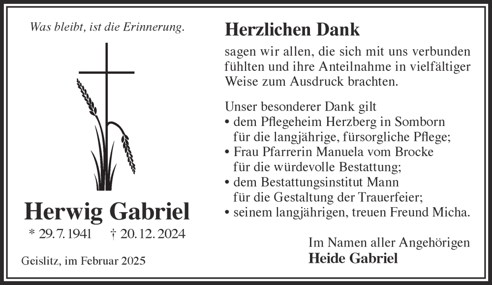 Hier finden Sie alle Traueranzeigen aus der Zeitung, die bisher für Herwig Gabriel erschienen sind. Weitere Traueranzeigen, die in der Zeitung erscheinen, werden hier ebenfalls aufgelistet