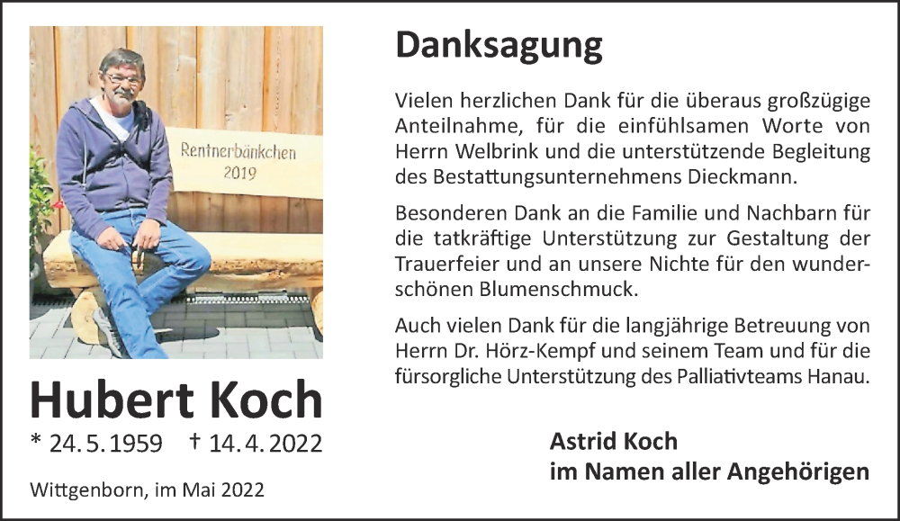 Hier finden Sie alle Traueranzeigen aus der Zeitung, die bisher für Hubert Koch erschienen sind. Weitere Traueranzeigen, die in der Zeitung erscheinen, werden hier ebenfalls aufgelistet