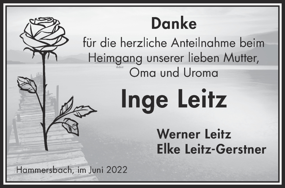 Hier finden Sie alle Traueranzeigen aus der Zeitung, die bisher für Inge Leitz erschienen sind. Weitere Traueranzeigen, die in der Zeitung erscheinen, werden hier ebenfalls aufgelistet