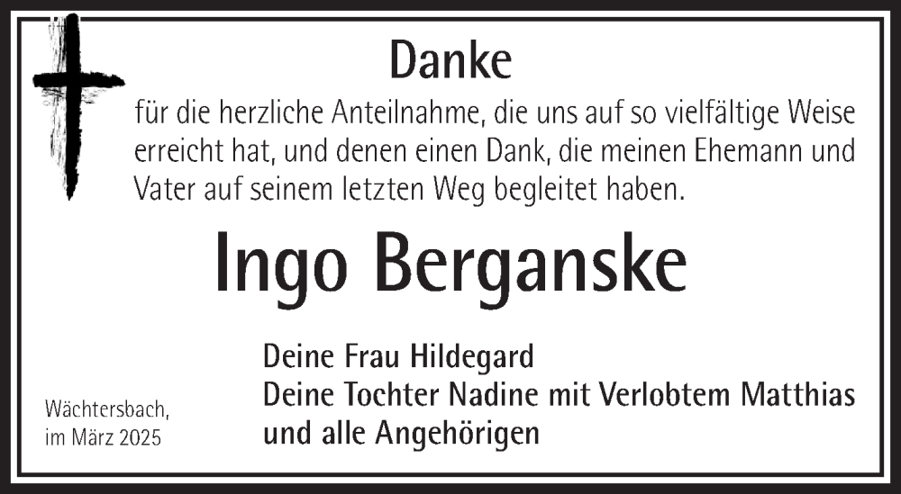 Hier finden Sie alle Traueranzeigen aus der Zeitung, die bisher für Ingo Berganske erschienen sind. Weitere Traueranzeigen, die in der Zeitung erscheinen, werden hier ebenfalls aufgelistet