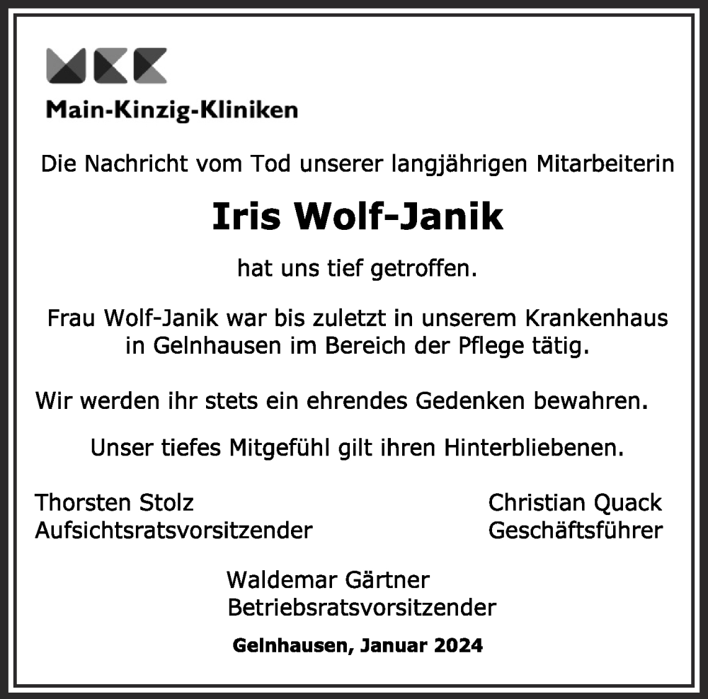 Hier finden Sie alle Traueranzeigen aus der Zeitung, die bisher für Iris Wolf-Janik erschienen sind. Weitere Traueranzeigen, die in der Zeitung erscheinen, werden hier ebenfalls aufgelistet