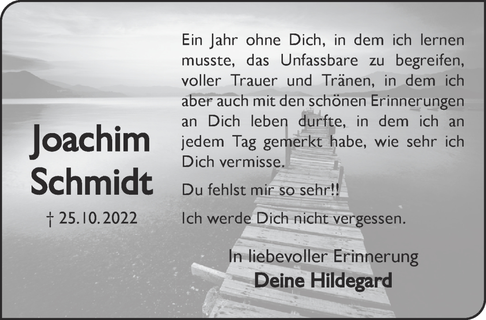 Hier finden Sie alle Traueranzeigen aus der Zeitung, die bisher für Joachim Schmidt erschienen sind. Weitere Traueranzeigen, die in der Zeitung erscheinen, werden hier ebenfalls aufgelistet