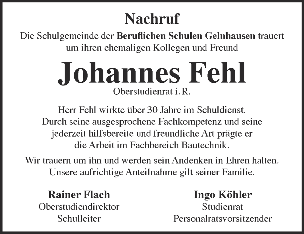 Hier finden Sie alle Traueranzeigen aus der Zeitung, die bisher für Johannes Fehl erschienen sind. Weitere Traueranzeigen, die in der Zeitung erscheinen, werden hier ebenfalls aufgelistet