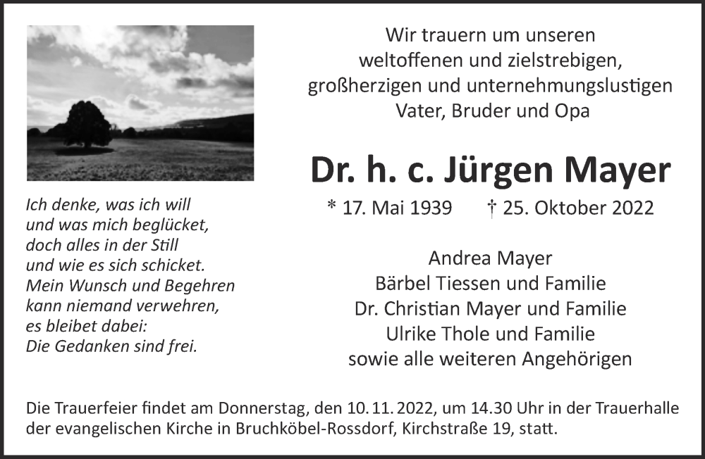 Hier finden Sie alle Traueranzeigen aus der Zeitung, die bisher für Jürgen Mayer erschienen sind. Weitere Traueranzeigen, die in der Zeitung erscheinen, werden hier ebenfalls aufgelistet