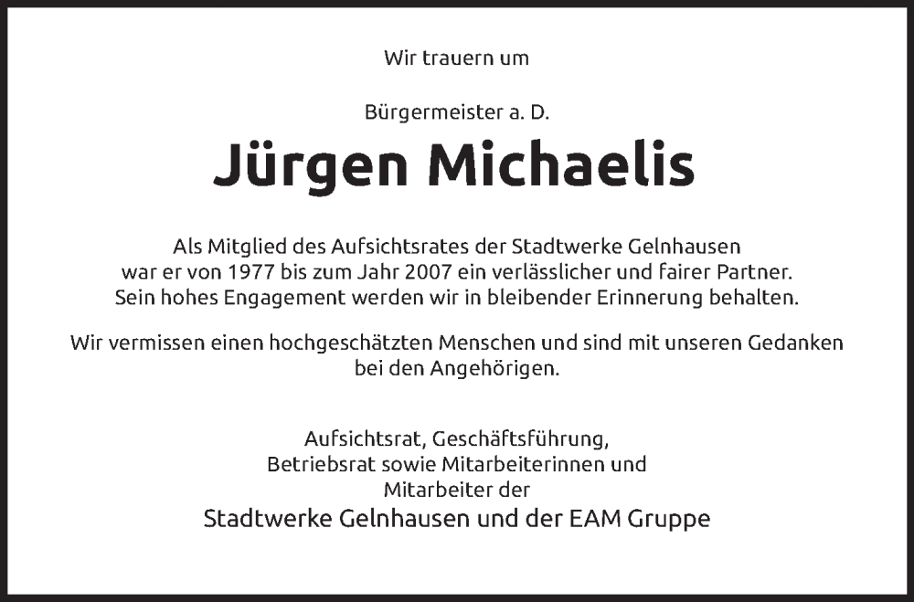 Hier finden Sie alle Traueranzeigen aus der Zeitung, die bisher für Jürgen Michaelis erschienen sind. Weitere Traueranzeigen, die in der Zeitung erscheinen, werden hier ebenfalls aufgelistet