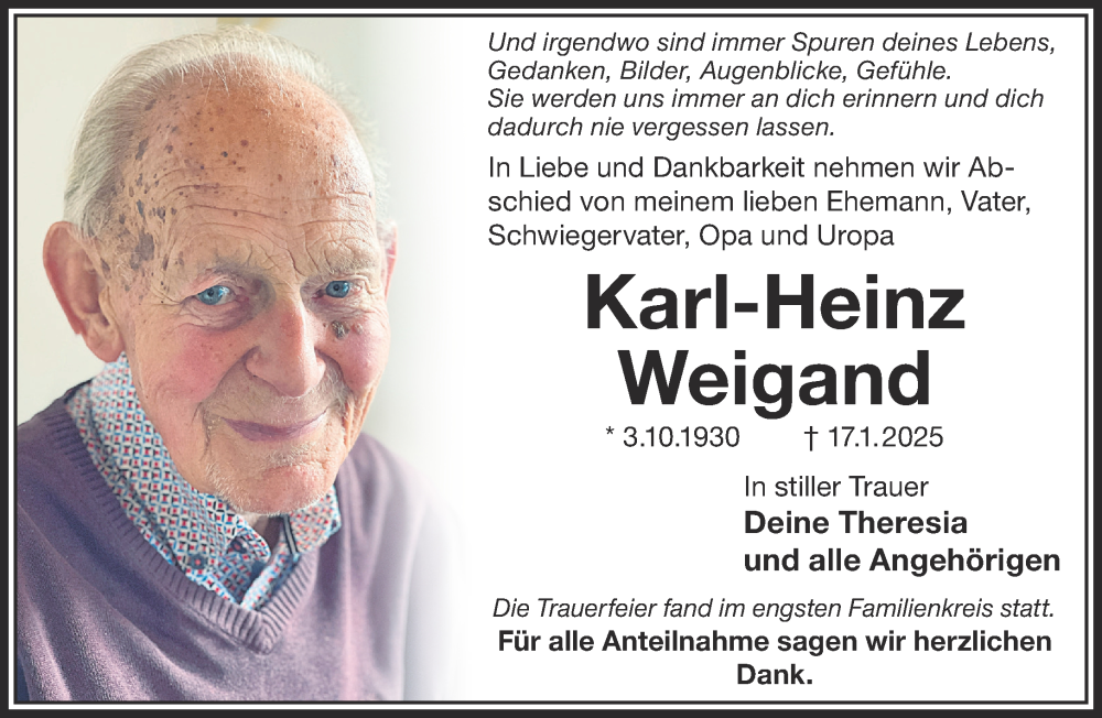 Hier finden Sie alle Traueranzeigen aus der Zeitung, die bisher für Karl-Heinz Weigand erschienen sind. Weitere Traueranzeigen, die in der Zeitung erscheinen, werden hier ebenfalls aufgelistet