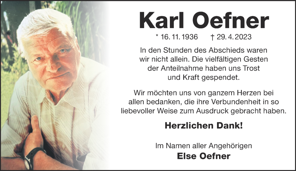 Hier finden Sie alle Traueranzeigen aus der Zeitung, die bisher für Karl Oefner erschienen sind. Weitere Traueranzeigen, die in der Zeitung erscheinen, werden hier ebenfalls aufgelistet