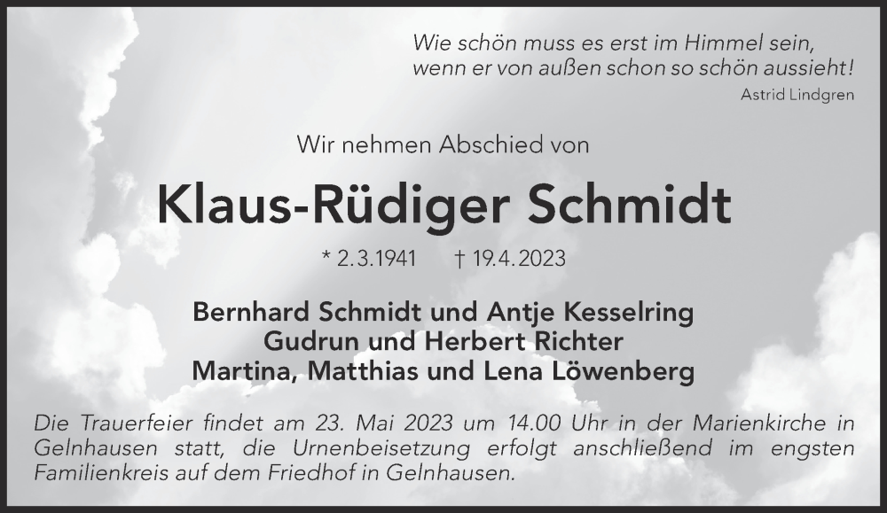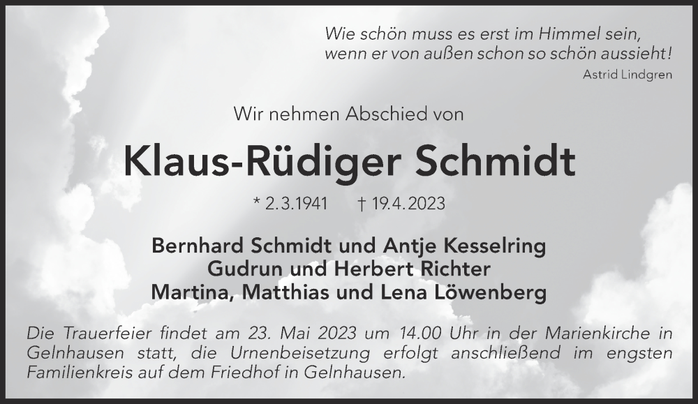 Hier finden Sie alle Traueranzeigen aus der Zeitung, die bisher für Klaus-Rüdiger Schmidt erschienen sind. Weitere Traueranzeigen, die in der Zeitung erscheinen, werden hier ebenfalls aufgelistet