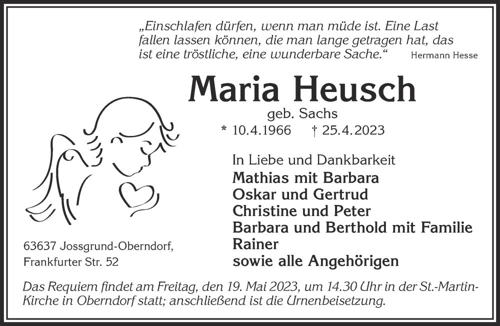 Hier finden Sie alle Traueranzeigen aus der Zeitung, die bisher für Maria Heusch erschienen sind. Weitere Traueranzeigen, die in der Zeitung erscheinen, werden hier ebenfalls aufgelistet