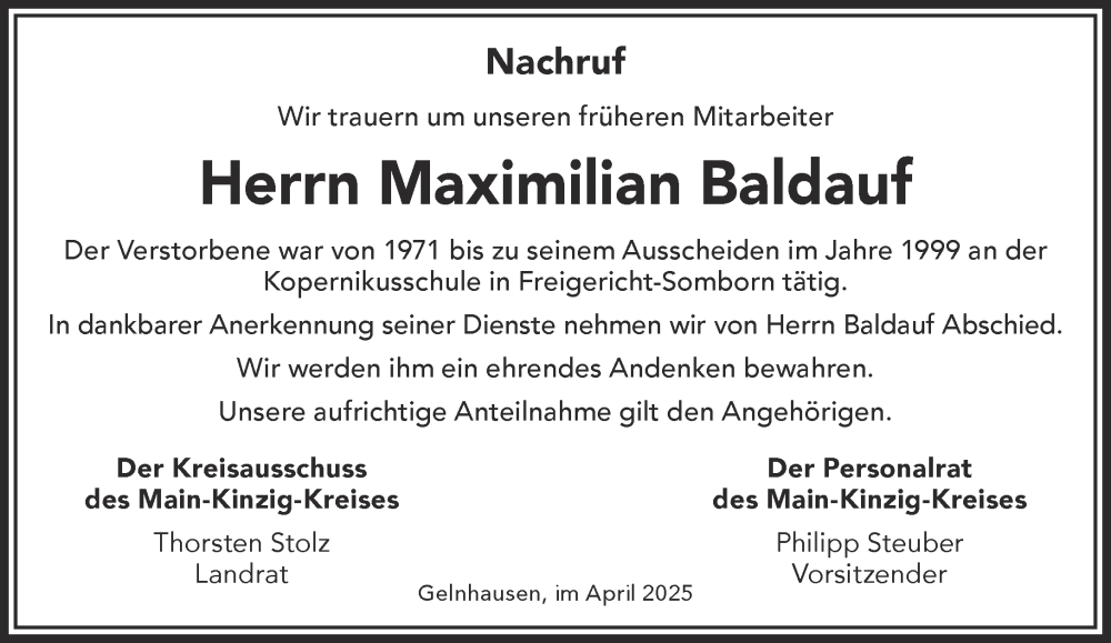 Hier finden Sie alle Traueranzeigen aus der Zeitung, die bisher für Maximilian Baldauf erschienen sind. Weitere Traueranzeigen, die in der Zeitung erscheinen, werden hier ebenfalls aufgelistet