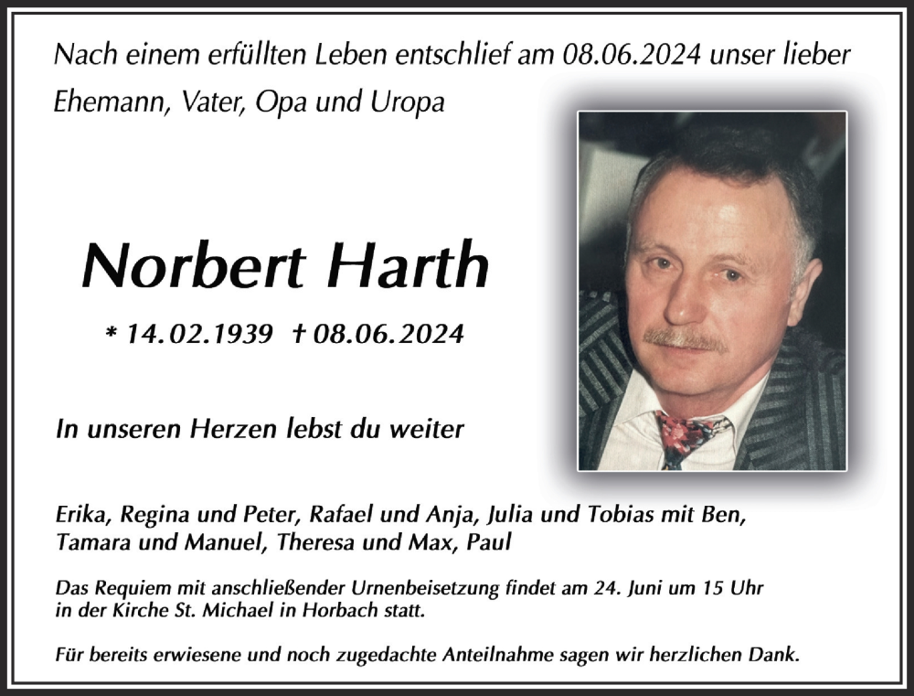 Hier finden Sie alle Traueranzeigen aus der Zeitung, die bisher für Norbert Harth erschienen sind. Weitere Traueranzeigen, die in der Zeitung erscheinen, werden hier ebenfalls aufgelistet