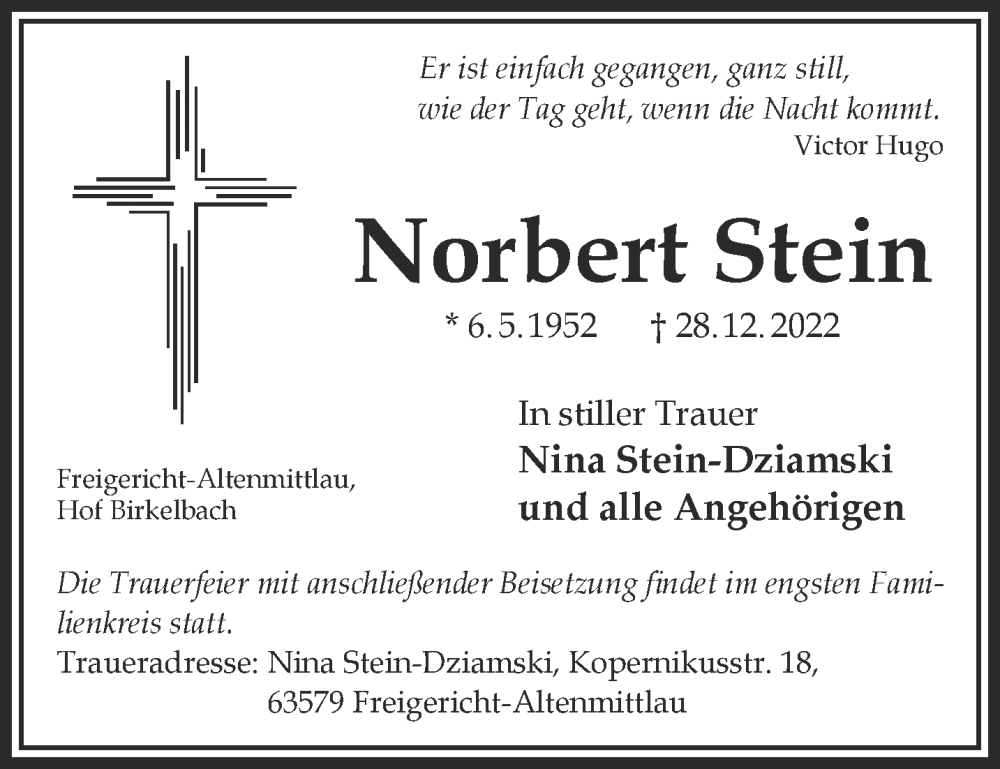 Hier finden Sie alle Traueranzeigen aus der Zeitung, die bisher für Norbert Stein erschienen sind. Weitere Traueranzeigen, die in der Zeitung erscheinen, werden hier ebenfalls aufgelistet