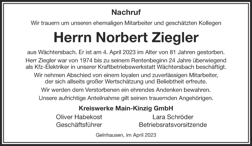 Hier finden Sie alle Traueranzeigen aus der Zeitung, die bisher für Norbert Ziegler erschienen sind. Weitere Traueranzeigen, die in der Zeitung erscheinen, werden hier ebenfalls aufgelistet
