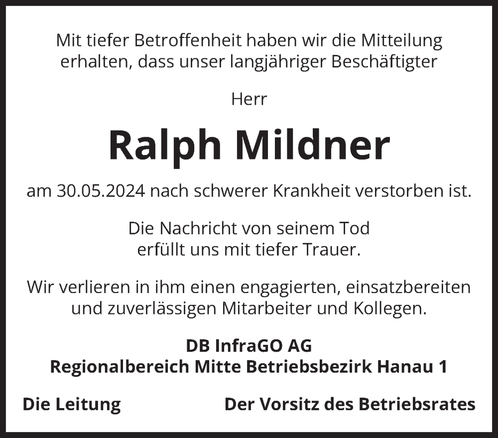 Hier finden Sie alle Traueranzeigen aus der Zeitung, die bisher für Ralph Mildner erschienen sind. Weitere Traueranzeigen, die in der Zeitung erscheinen, werden hier ebenfalls aufgelistet