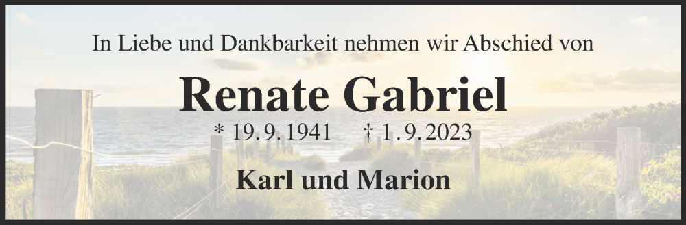 Hier finden Sie alle Traueranzeigen aus der Zeitung, die bisher für Renate Gabriel erschienen sind. Weitere Traueranzeigen, die in der Zeitung erscheinen, werden hier ebenfalls aufgelistet