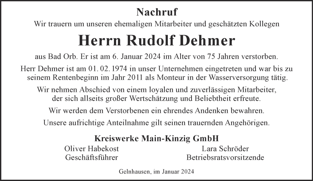 Hier finden Sie alle Traueranzeigen aus der Zeitung, die bisher für Rudolf Dehmer erschienen sind. Weitere Traueranzeigen, die in der Zeitung erscheinen, werden hier ebenfalls aufgelistet