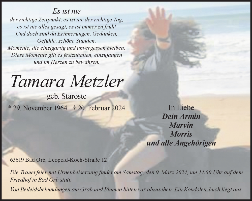 Hier finden Sie alle Traueranzeigen aus der Zeitung, die bisher für Tamara Metzle erschienen sind. Weitere Traueranzeigen, die in der Zeitung erscheinen, werden hier ebenfalls aufgelistet