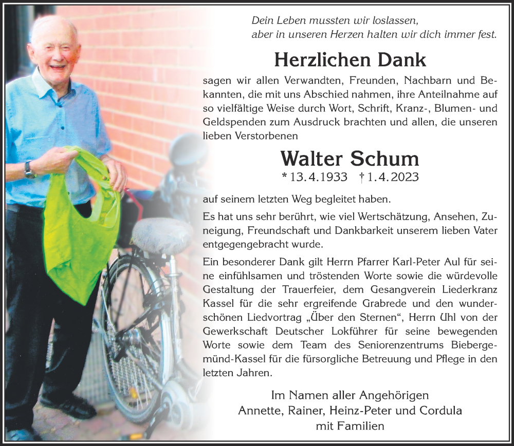 Hier finden Sie alle Traueranzeigen aus der Zeitung, die bisher für Walter Schum erschienen sind. Weitere Traueranzeigen, die in der Zeitung erscheinen, werden hier ebenfalls aufgelistet