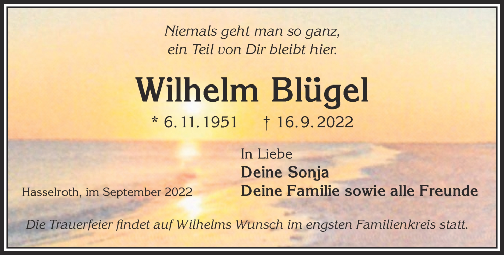Hier finden Sie alle Traueranzeigen aus der Zeitung, die bisher für Wilhelm Blügel erschienen sind. Weitere Traueranzeigen, die in der Zeitung erscheinen, werden hier ebenfalls aufgelistet