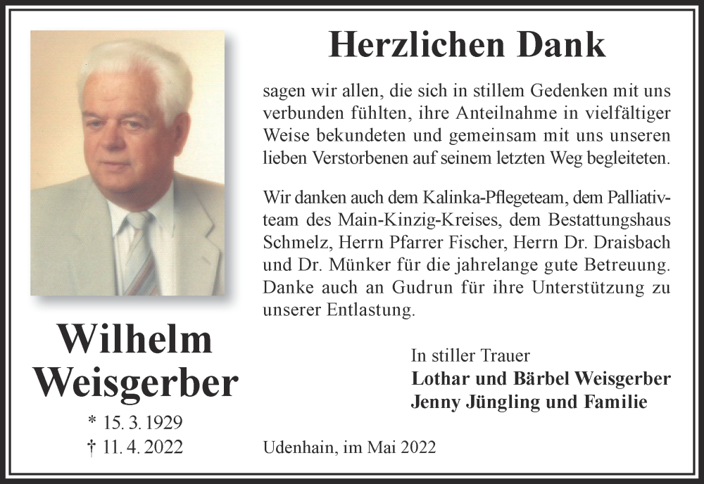 Hier finden Sie alle Traueranzeigen aus der Zeitung, die bisher für Wilhelm Weisgerber erschienen sind. Weitere Traueranzeigen, die in der Zeitung erscheinen, werden hier ebenfalls aufgelistet